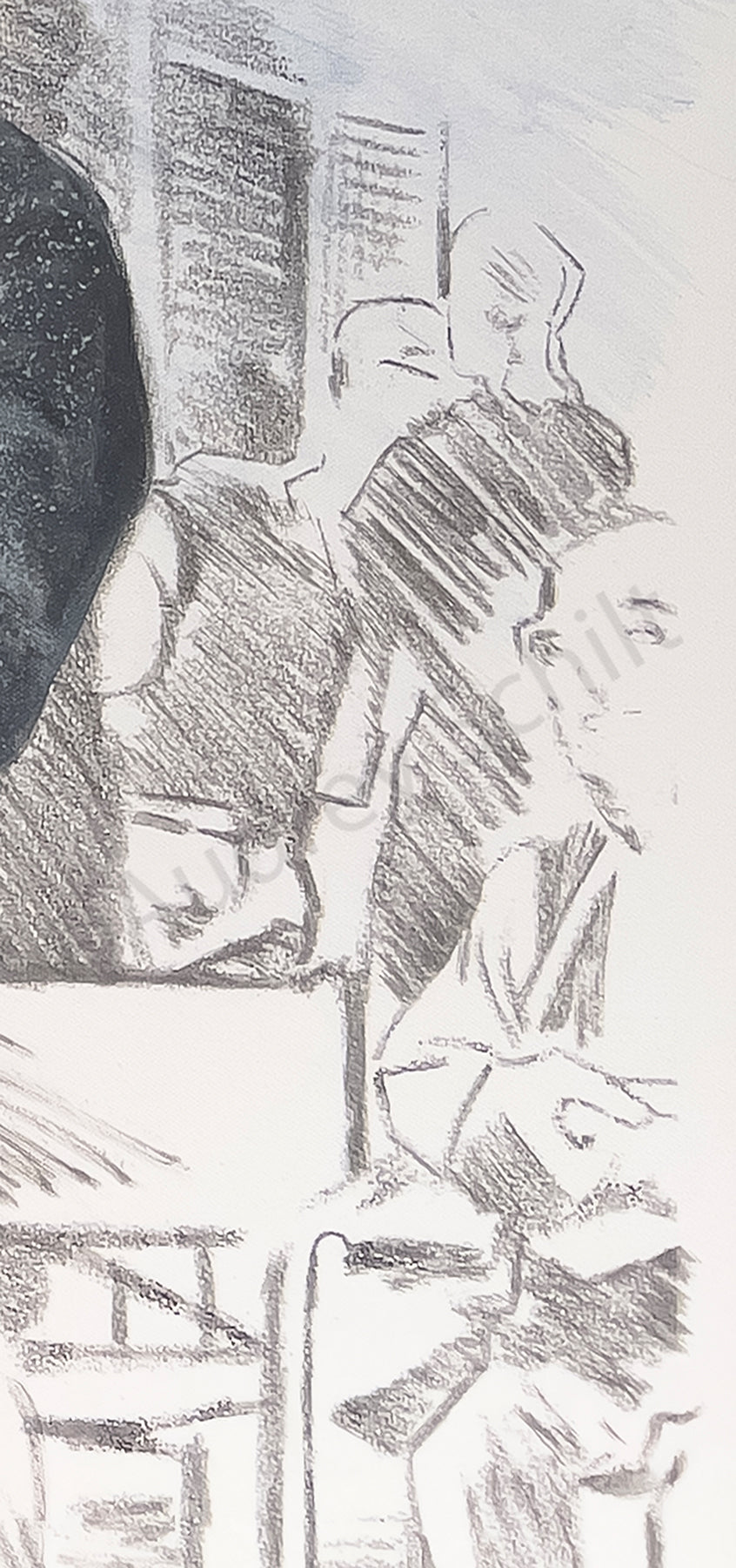 Depicting one of many scenes I observed during fitting of collections, this one includes Ralph Lauren with models Claudia Schiffer (left), Helena Christensen, and head of the workroom, Rebecca Lustig. Ralph was always on hand to direct the fittings and style the clothing. The room was filled with people rushing about... I loved capturing intimate moments like this one.